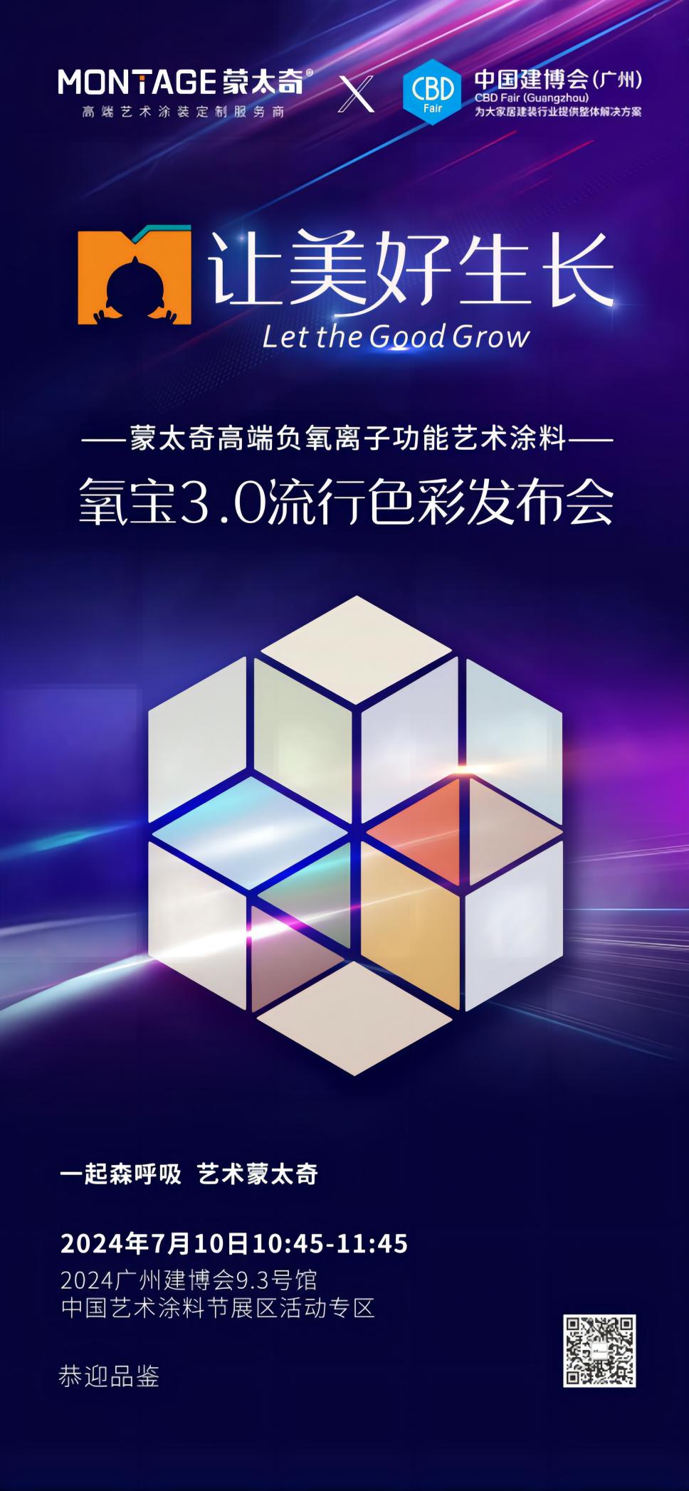 7月8日至11日,有着大家居建装行业“冠军企业首秀平台”之称的第26届广州建博会将在广州盛大开幕。作为“让美好生长”年度品牌策略全面落地的第一站,蒙太奇继续以“一起森呼吸·艺术蒙太奇”为主题,携新产品、新色彩、新工艺、新服务亮相B区9.3馆中国涂料节展区A01,将携5大硬核亮点为观众带来一场艺术涂料真正的“蜕变新饰力”。