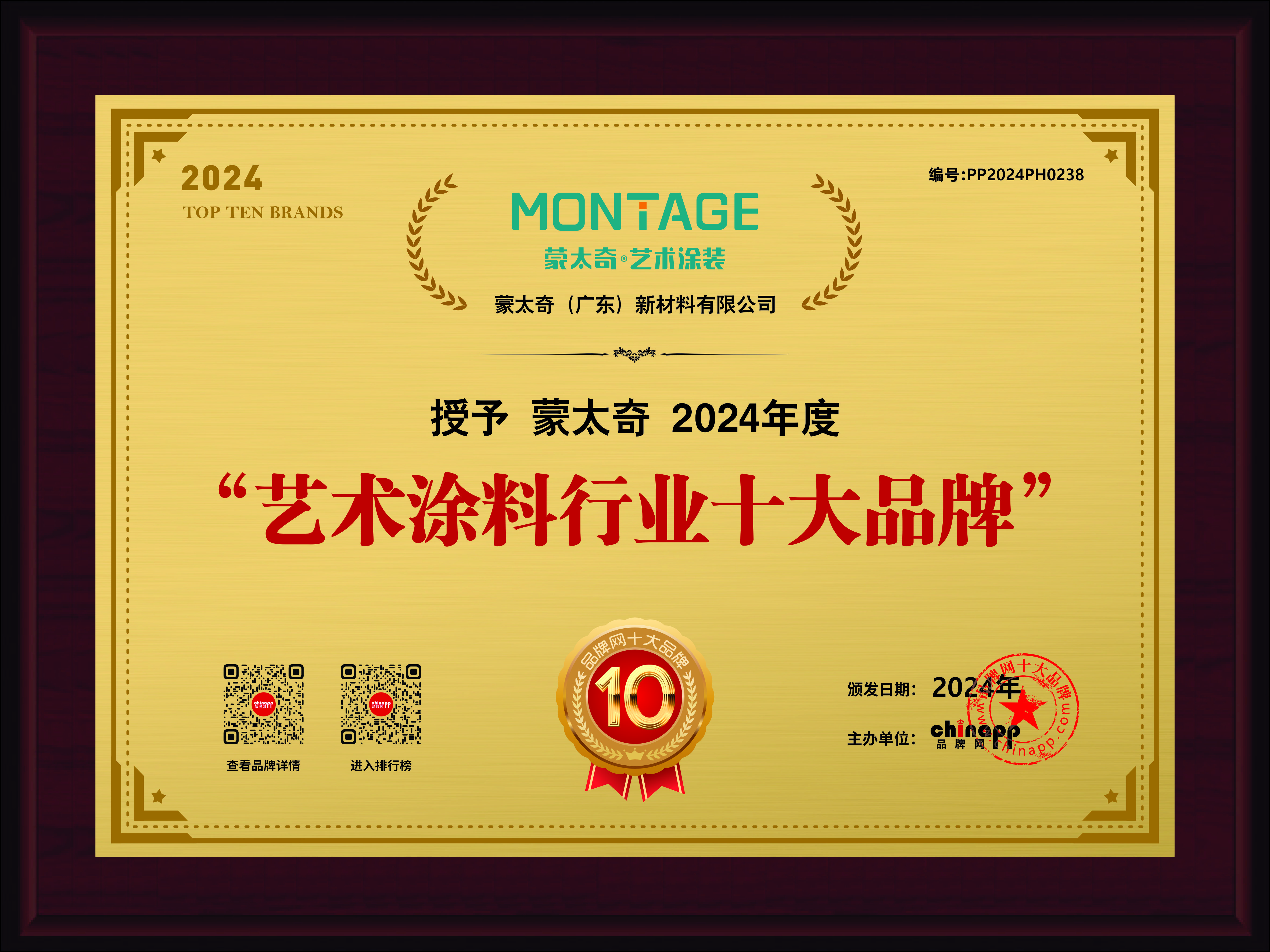 蒙太奇连续11年蝉联艺术涂料行业十大品牌称号,是长期来坚持品质与创新、致力于为消费者提供高品质艺术涂料产品的肯定。我们相信,这一荣誉将激励蒙太奇继续秉持初心,在艺术涂料领域精耕细作,进一步提高自主创新能力、增强核心竞争力。加强与行业伙伴的合作与交流,共同推动涂料行业的健康发展。