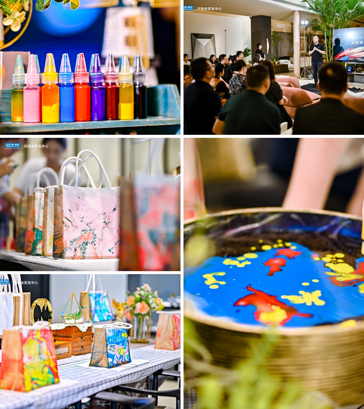 下午,设计师沙龙以自有涂鸦为开始,设计共创制作环节,通过漂漆技艺制作漂漆帆布包,亲自体验涂料的创意与魅力,借此机会,更好地理解设计师在涂料方面的需求,包括产品、工艺以及如何装修供应链环境相结合。此外,并共同探讨室内空间色彩的运营趋势,对色彩的选择与设计、材料的创新与运用等进行交流探讨。