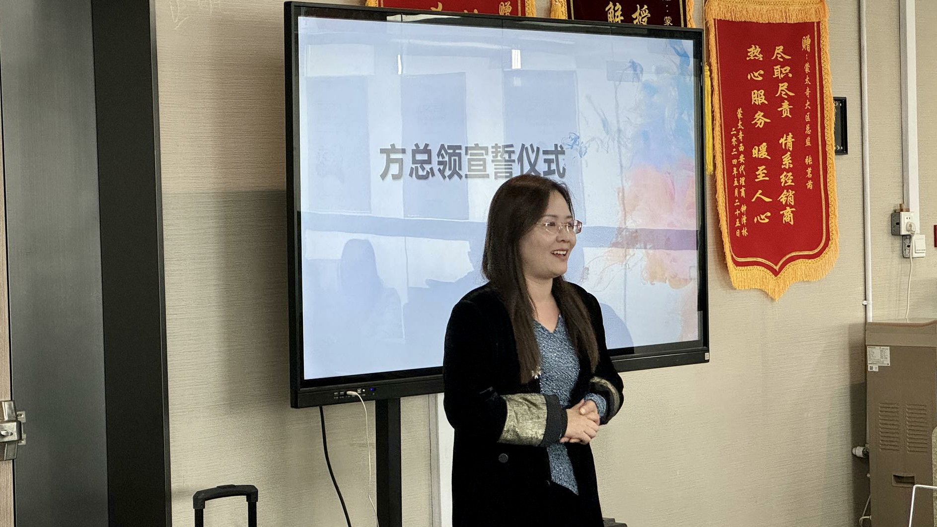 随后,蒙太奇联合创始人、艺术涂料最美老板娘吕芳方女士发表致辞,引领全体员工针对2025年蒙太奇奋斗目标进行宣誓。