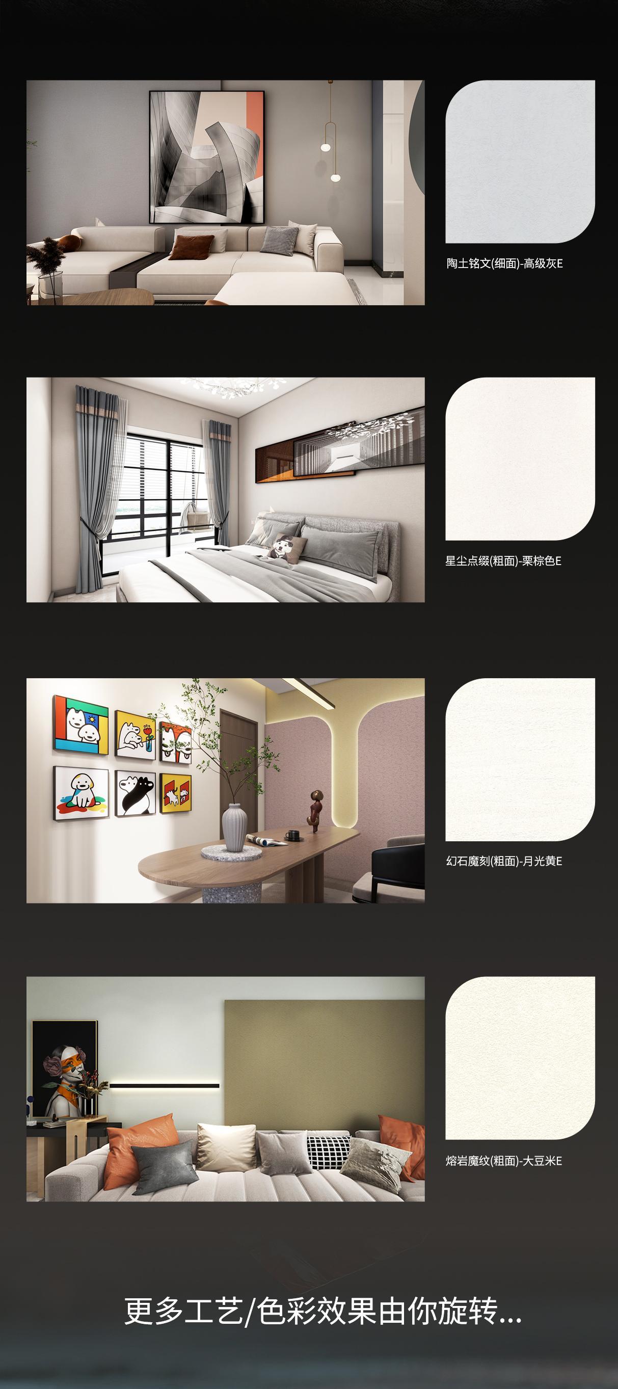 √ 底料+面漆自由组合,面层仍可无限叠加不同艺术效果,这种持续进化能力真正做到 “一套魔方涂装系统,解锁空间百变”。