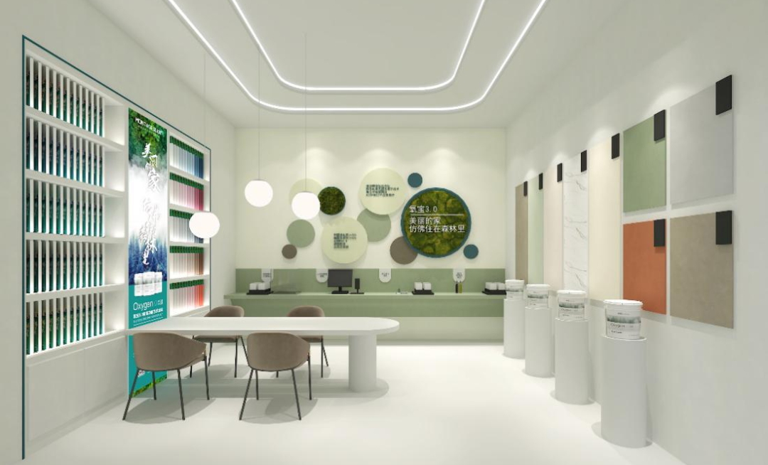 采用氧宝3.0高端功能艺术涂料“好空气,森呼吸”的产品理念,融合蒙太奇“用艺术涂装美好生活”的品牌主张,氧宝3.0功能艺术涂装馆以16*9m的周正造型、别墅园林的风格,全面塑造“美丽的家,仿佛住在森林里”的生态艺术之境。