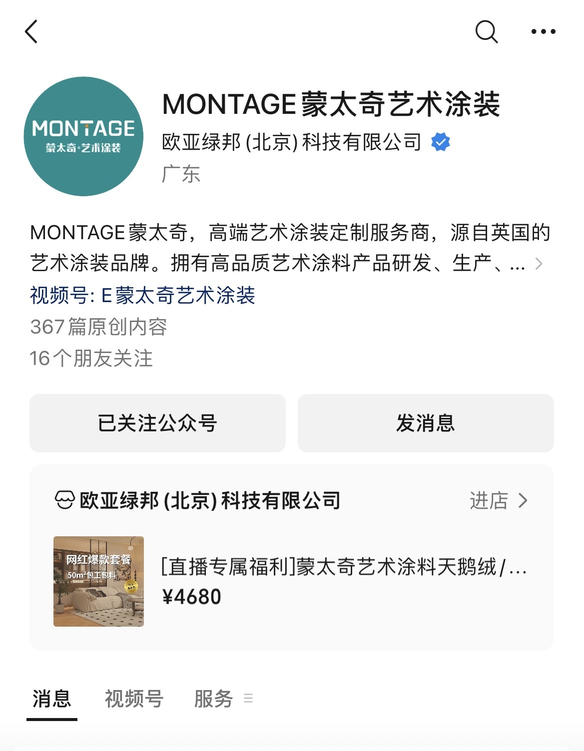 通过微信客户端扫描产品包装侧封处的【官方微信公众号二维码】,对【MONTAGE蒙太奇艺术涂装】官方公众号的关注与绑定。此平台为品牌唯一授权的防伪查询入口。