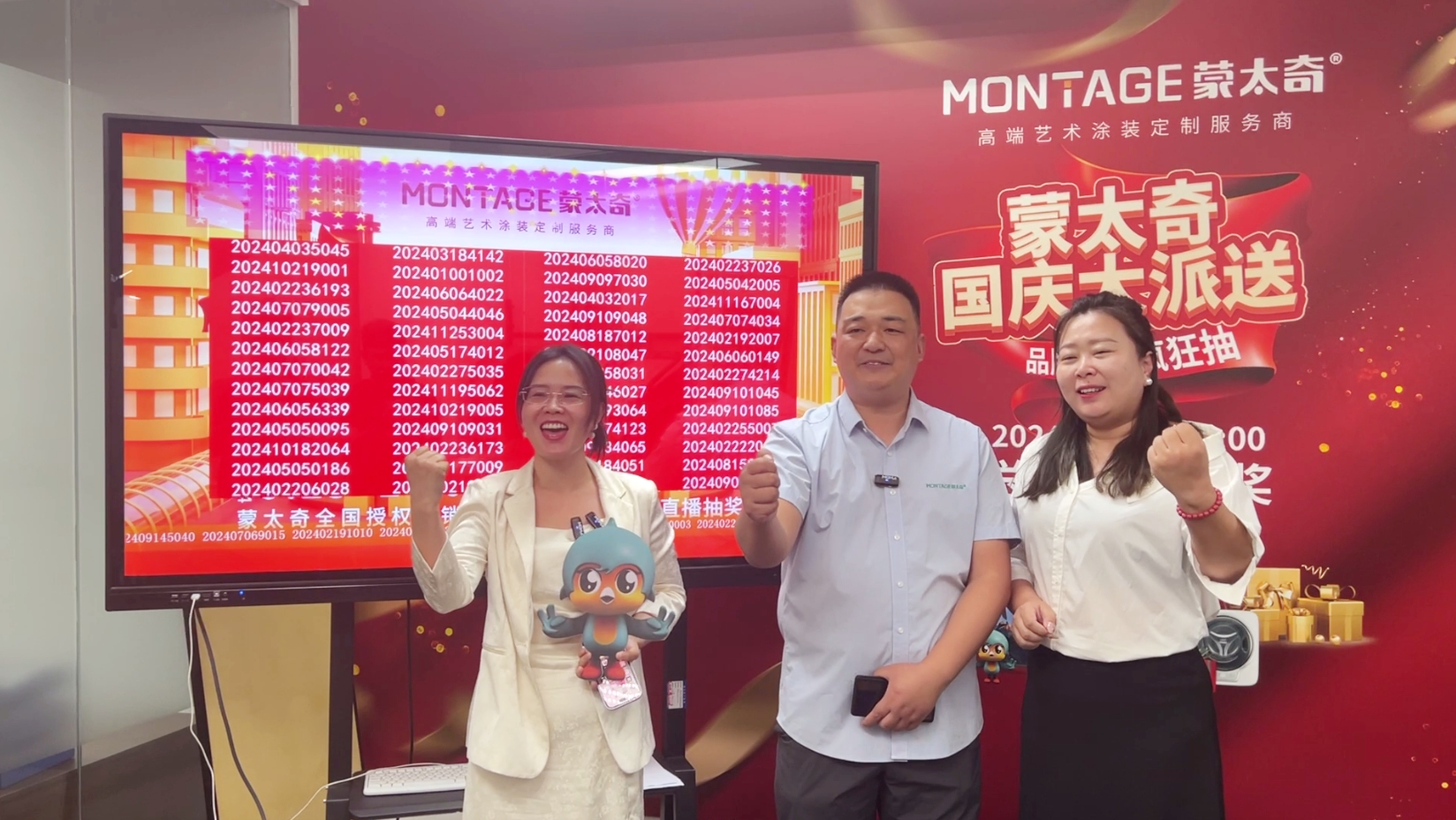 为表彰国庆大促活动中表现突出的经销商,对实际总回款排名前10名的优秀经销商分别授予抖音推流及线下陪跑的支持奖励,助力更多经销商实现流量增长,通过内容驱动消费者,真正做到赋能终端。此外,10月10日还举办了“品牌家电疯狂抽”的直播活动,直播间人气爆棚,进一步将活动氛围拉高。随着20位赢得75寸电视剧的大奖幸运儿出现,标志着蒙太奇国庆大派送活动圆满落幕。