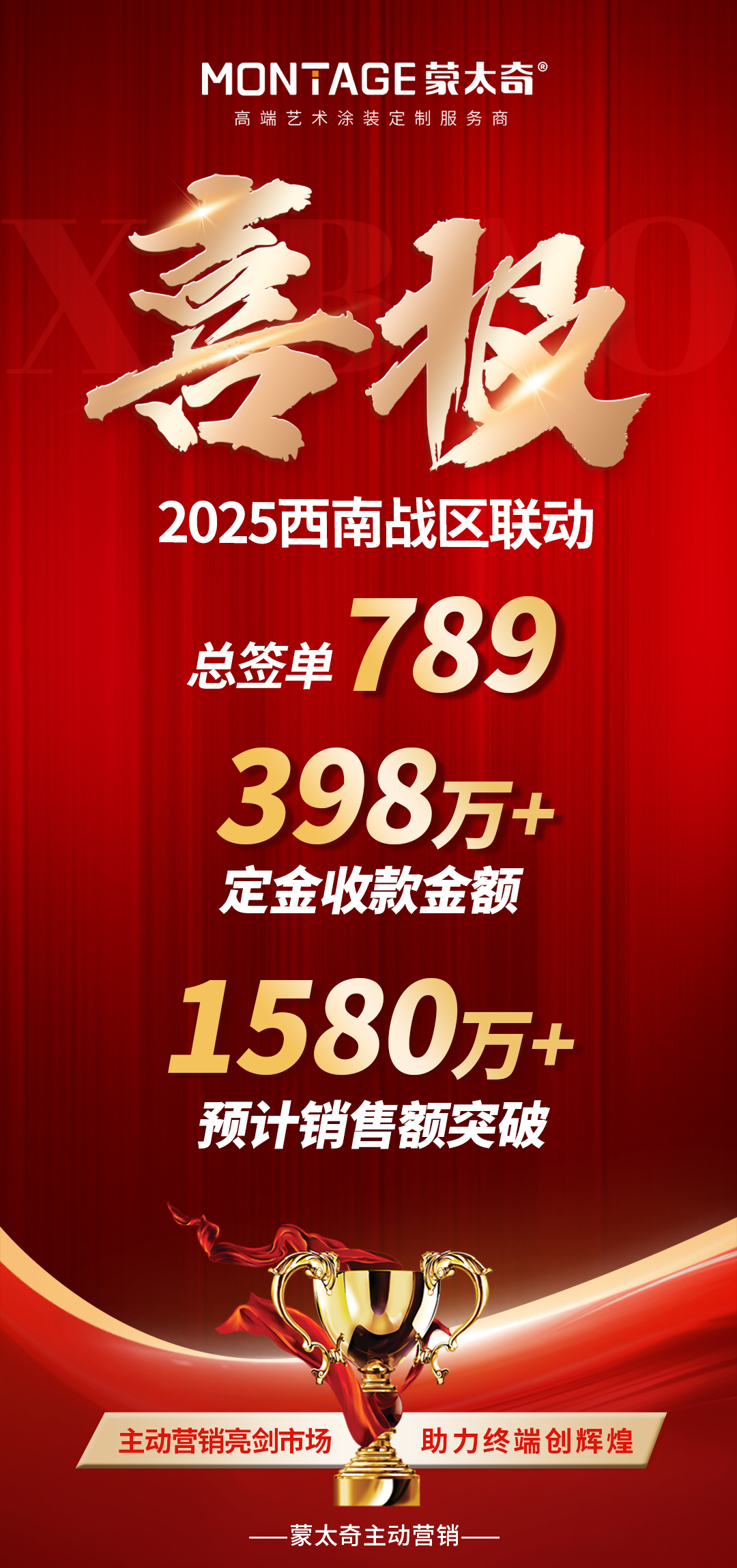 历时23天的"51惠装季"西南区域联动活动于5月11日圆满收官。蒙太奇全国终端门店通过精准营销策略与高效执行体系,在此次跨区域联动中交出亮眼成绩单,共创下成交789单、定金收款总额超398万元的佳绩,不仅实现销售业绩与用户口碑的双向突破,更以破圈之势推动品牌势能持续攀升,为终端市场布局注入强劲动能。