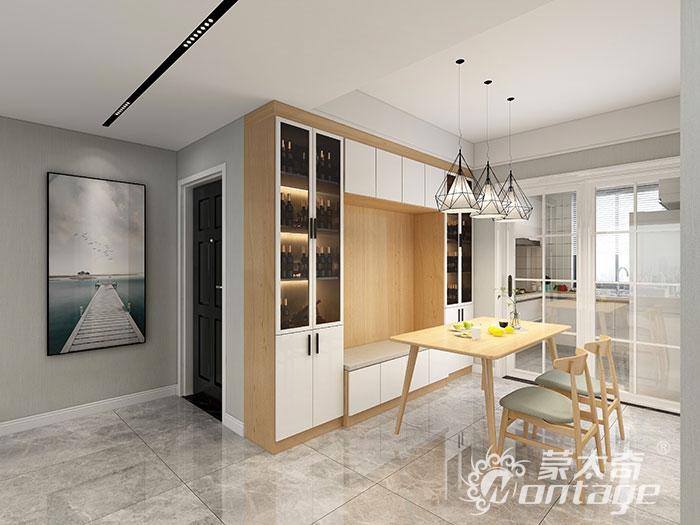 任何空间的设计都要迎合装修主风格,尤其是客餐厅一体的空间。在视觉上,餐厅延伸了客厅色彩搭配,简约而时尚的餐桌椅,搭配定制的卡座餐边柜,让生活也变得精致无比。